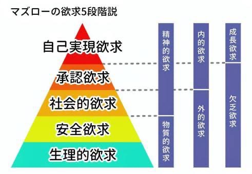 - 自己実現欲求: 自分の能力を最大限に発揮したい、何かを成し遂げたいという欲求